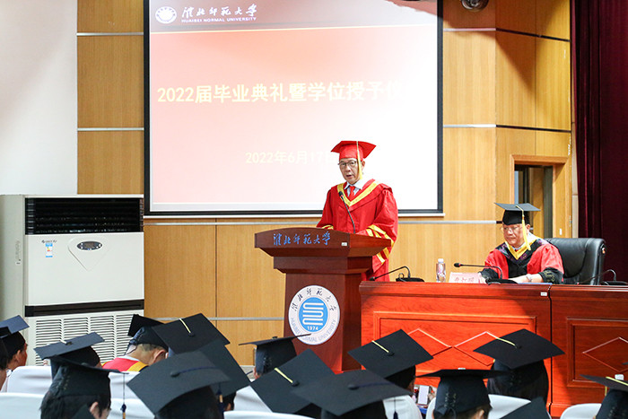 副校长蔡雷宣读了淮北师范大学关于学士及硕士学位的授予决定。校纪委书记曹灯明宣读了2022年安徽省普通高等学校品学兼优毕业生名单。
