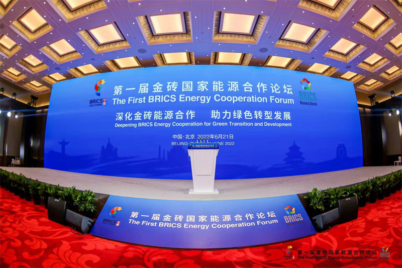 2022年金砖国家工商论坛开幕前夕,由金砖国家工商理事会理事单位中国石油天然气集团有限公司与中国工程院能源与矿业工程学部联合主办的第一届金砖国家能源合作论坛6月21日在北京召开。论坛秉承“立足工商、聚焦合作、服务金砖、面向全球”的理念,以“深化金砖能源合作,助力绿色转型发展”为主题,设置了开幕式、联合倡议发布和两场对话。