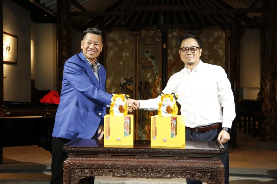 在现场嘉宾的共同见证下,“陈太吉生肖酒·粤博联名款”揭幕仪式同时举行。广东省博物馆协会理事长、广东省博物馆副馆长陈邵峰,广东石湾酒厂集团董事长、陈太吉酒庄庄主范绍辉共同揭开“陈太吉生肖酒·粤博联名款”的神秘面纱,宣布陈太吉酒庄联合广东省博物馆推出首款联名产品正式亮相。