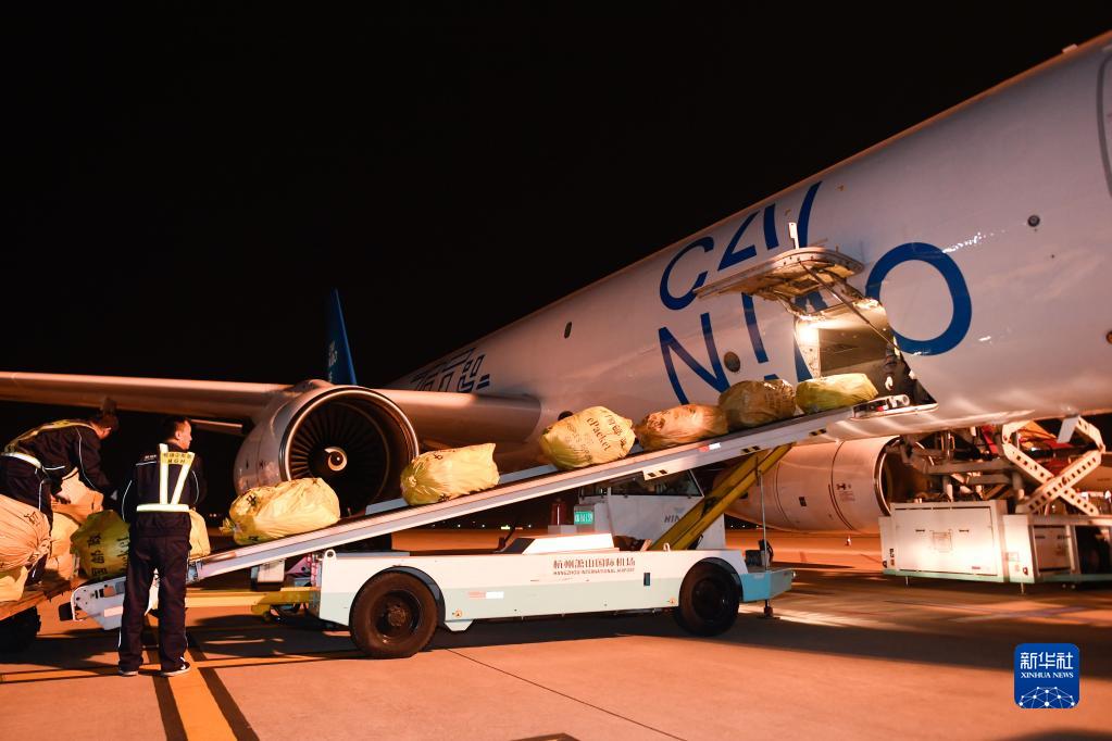 2019年10月30日凌晨,浙江杭州飞往俄罗斯首都莫斯科的首条直达电商货运航线“菜鸟号”从萧山国际机场首航。新华社记者 黄宗治 摄