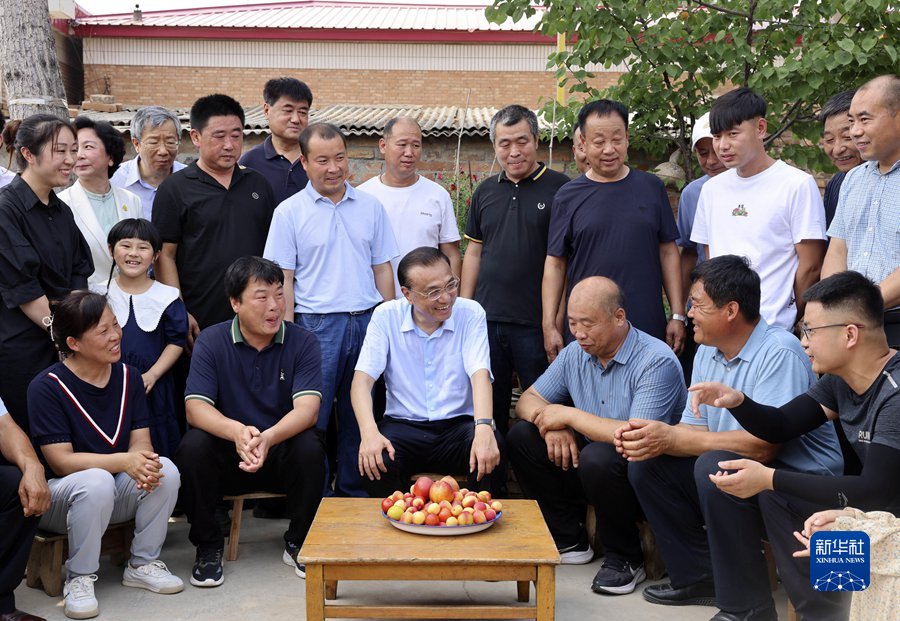 6月21日,中共中央政治局常委、国务院总理李克强在河北高碑店、涿州考察。这是李克强来到高碑店大铺村,察看晾晒的小麦后,与村民围坐交谈。 新华社记者 刘卫兵 摄