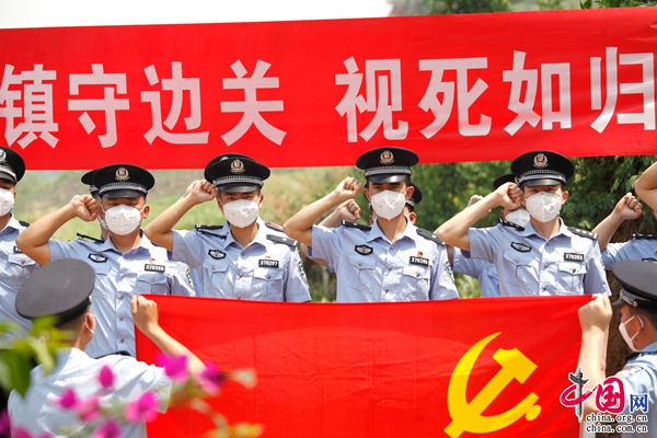 (云南普洱边境管理支队民警在党旗前宣誓)