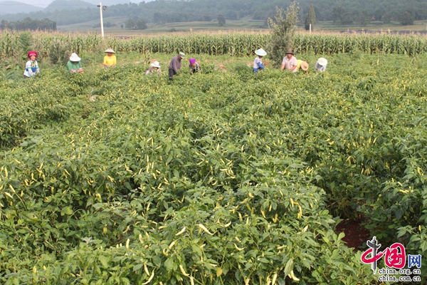 “摘辣椒的时候是最辛苦的,腰一直弯着都快站不起来了,但是这个时候也是最开心的,背着一袋袋辣椒拿去卖的时候,心里比吃了蜜还甜。”手机铃声响起的村民梁正彩望着田里的辣椒缀满枝头,腰间的竹篓里盛满了收获的喜悦。