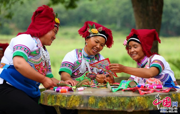 星罗棋布的山丘、阡陌纵横的田野、山林间蝉鸣鸟叫、山谷间溪水潺潺……绿,是幕菲勒村最鲜明的底色。白墙青瓦的民舍、多彩灵动的彝家镶边服饰“扁尼变”、响遍每一个角落的清脆弦声、大树下话着家常娴熟做着针线活的妇孺……笑容,是幕菲勒村最富感染力的印象。