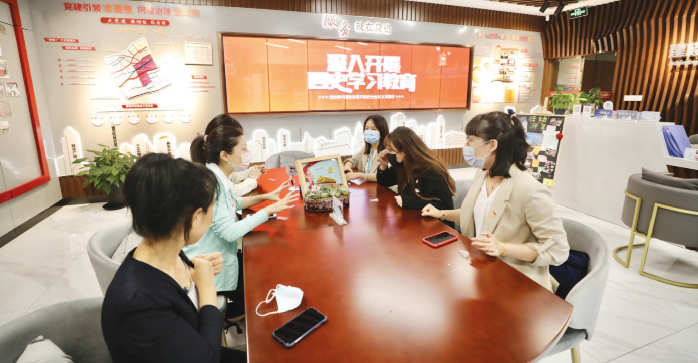 ▲静安寺街道党群服务站暨企业服务中心积极组织周边楼宇白领开展学习教育。 本报记者 袁婧摄