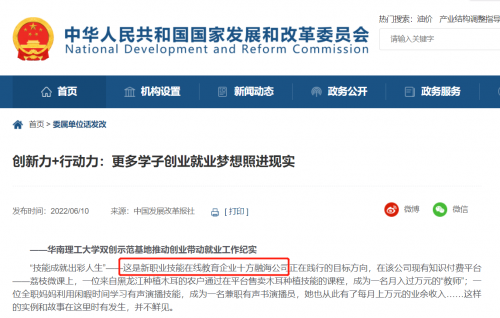 值得注意的是,《中国发展改革报》文中提到十方融海也正是在国家“大众创业万众创新”工作影响之下成长起来的大学生成功创业的典型案例。公开资料显示,十方融海董事长黄冠毕业于华南理工大学计算机系,受益于华南理工大学浓厚的“双创”氛围,黄冠在大学期间便开启了创业之路,曾获得第三届中国“互联网+”大学生创新创业大赛全国金奖,毕业后更是和同是华南理工大学毕业的学姐陈劢等人一起创办知识付费平台荔枝微课,一步一步发展至今日的根植于成人新职业技能教育的十方融海。