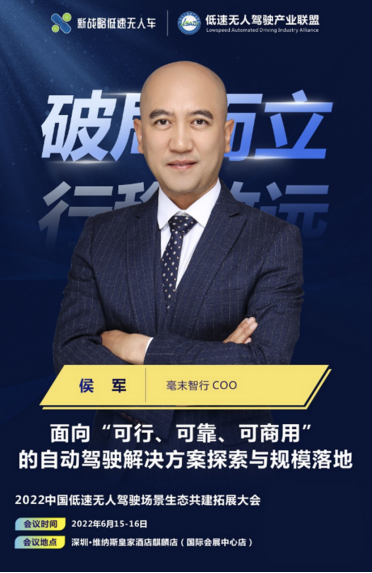 “当下,中国低速无人驾驶在技术、市场、资金、人才和相关政策的共同努力下,赛道已经爆发。毫末面向市场推出的6P和5S的合作方案,致力于合作一切可以合作的伙伴,开放一切可以开放的能力,共同为加速行业出行及物流方式的改变做出贡献。”6月16日,由中国低速无人驾驶产业联盟举办的“2022中国低速无人驾驶场景生态共建拓展大会”在深圳以“线上+线下”的形式召开,作为中国量产自动驾驶领域领军企业,毫末智行COO侯军应邀出席参会并发表演讲。当日,侯军代表毫末,也当选为低速无人车产业联盟副理事长。