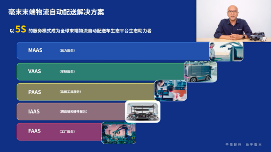 此外,侯军还分享了毫末末端物流自动配送解决方案5S服务模式,即运力服务(MAAS)、车辆服务 (VAAS)、系统工具服务(PAAS)、供应链和硬件服务(IAAS)、工厂服务(FAAS)。“5S服务目前已经在真实场景中为很多的客户提供了大量支持。”