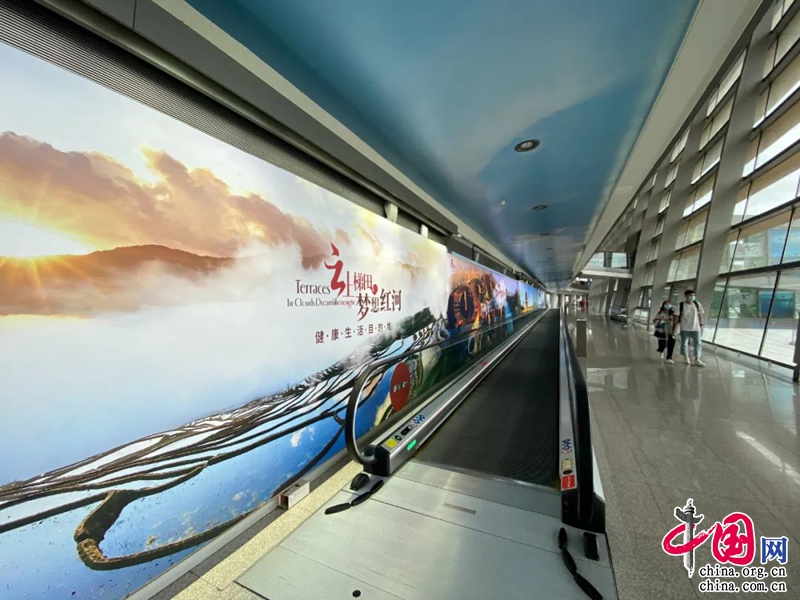目前,由红河州文化和旅游局全新打造的“创意宣传长廊”惊艳亮相昆明长水国际机场,让赴滇旅客一下飞机,便能领略“云上梯田·梦想红河”魅力。这也是疫情常态化下,红河文旅创新宣传促销,助力行业加速复苏,提升红河州美誉度和知名度的一大举措。