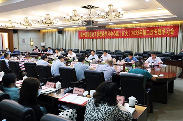 6月13日上午,南宁高新区召开党工委理论学习中心组(扩大)2022年第二次专题会议。