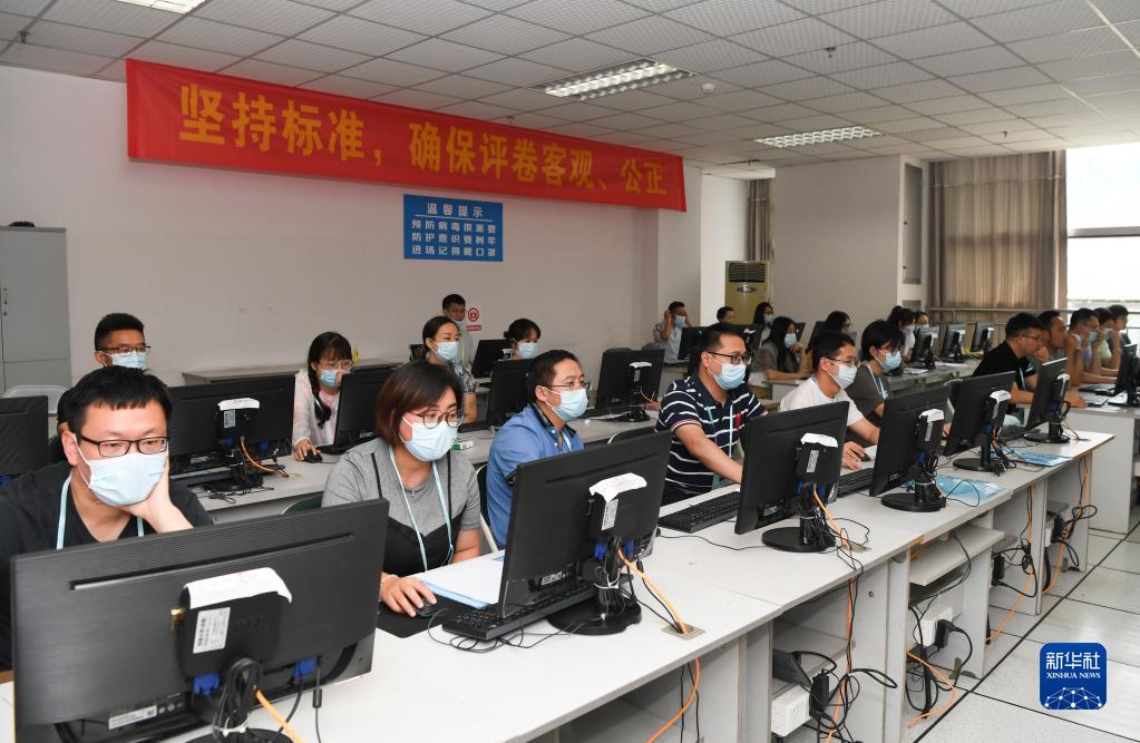 6月14日,评卷教师在位于西南大学的重庆市高考评卷场阅卷。据了解,2022年重庆市参加全国统一高考人数约18.4万人,试卷数量约110万份,全市统一选派评卷教师1300余人参加评卷工作。新华社记者 王全超 摄