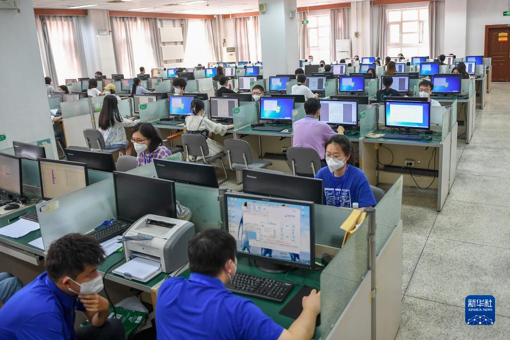 6月14日,在位于吉林长春的东北师范大学高考网上评卷点,工作人员在评卷。据了解,2022年吉林省高考评卷工作全部采用电子扫描、网上评卷方式进行。新华社记者 张楠 摄