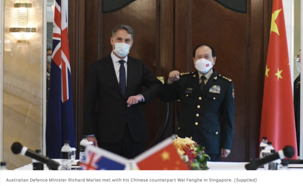 近日,在新加坡举行的香格里拉对话会上,中国国防部长魏凤和与澳大利亚国防部长马勒斯举行了会谈。自2020年1月,中澳关系进入冰点以来,这是双方高层官员两年来的首次接触。