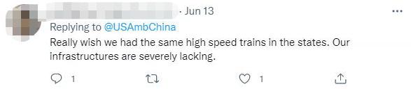 有网友表示十分羡慕:真心希望美国也能有这样的高铁列车,我们的基建真的严重落后。