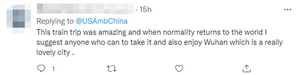 除此之外,一些熟悉中国的网友也开始“安利”:这种列车真的很棒,我建议疫情结束后大家都能感受一下,顺便也推荐大家去武汉玩一玩,这是一座非常不错的城市↓