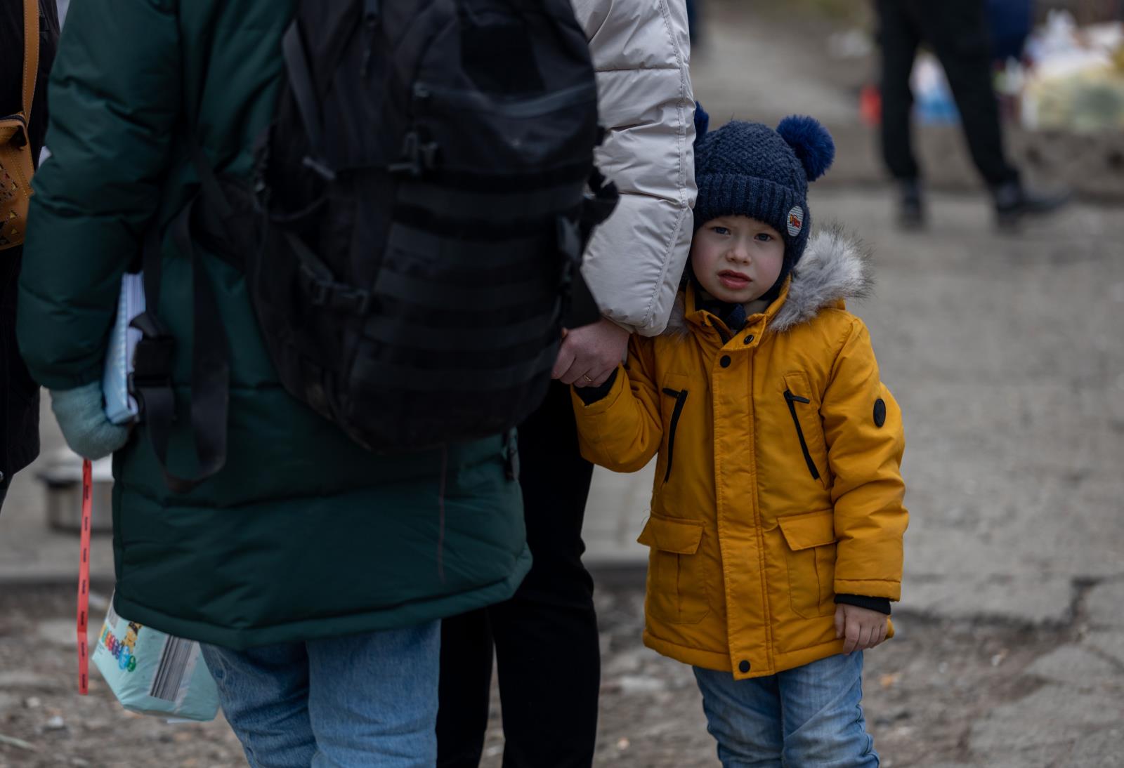 2月26日,一名乌克兰男孩抵达波兰边境口岸梅迪卡。新华社记者 周楠 摄