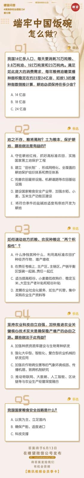 一方面,全面落实粮食安全党政同责,严格粮食安全责任制考核,主产区、主销区、产销平衡区要饭碗一起端、责任一起扛。另一方面,健全农民种粮收益保障机制,适当提高稻谷、小麦最低收购价,稳定玉米、大豆生产者补贴和稻谷补贴政策,实现三大粮食作物完全成本保险和种植收入保险主产省产粮大县全覆盖;大力发展农业社会化服务,带动小农户提高种粮综合效益。