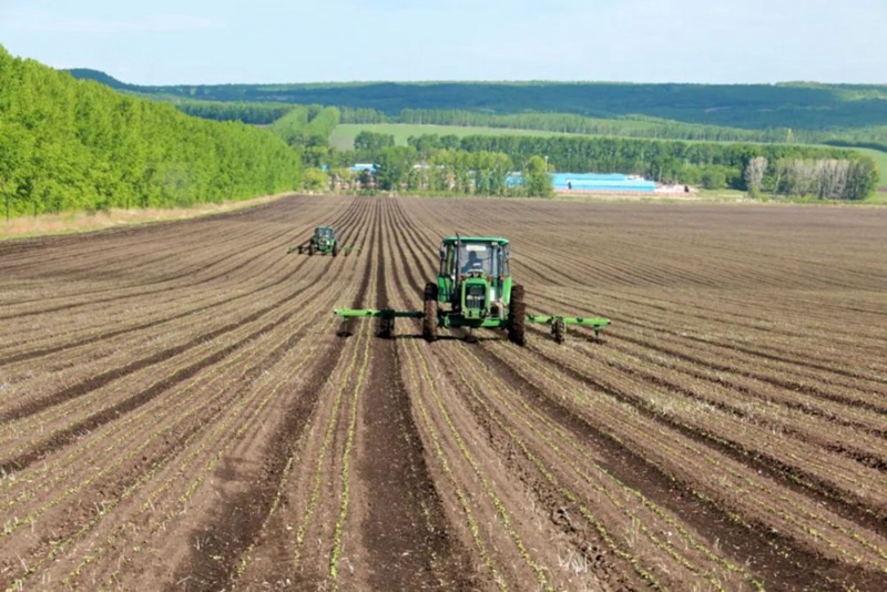 2022年6月1日,北大荒农垦集团五大连池农场,农机在大豆田里进行中耕作业 陆文祥摄 / 本刊