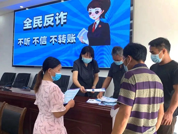 利用到玉屏镇龙古村委会小新村开展巡回审判的契机,在做好疫情防控的前提下,法官们向前来旁听案件审理的村民们开展了反诈知识宣传,发放反诈宣传手册,利用典型案例详细讲解了不法分子常用的冒充网购客服、冒充公检法、投资理财等诈骗套路,提醒村民做到不点、不听、不信、不转账。通过巡回办案宣传,进一步提高了广大群众的法律意识和反诈能力,营造了反诈防诈的浓厚氛围。(刘梦楠 罗旋 红河州中级人民法院供稿)