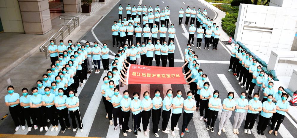 浙江省援沪重症医疗队队员离沪前合影留念(受访单位供图)