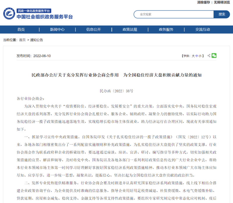 通知要求,各行业协会商会要深入会员企业一线开展调查研究,密切跟踪掌握国家稳经济政策措施在本行业本领域的落实情况,及时准确向政府部门反映第一手数据和信息,为政府部门实时调整和完善各项稳经济政策措施提供决策咨询和智力支持。要持续调研了解会员企业在疫情期间遇到的堵点难点卡点,关心关注行业从业者防疫安全和工作生活中存在的实际困难,了解掌握疫情期间行业就业情况以及用工用水用电、物流运输、原材料供应等方面存在问题,积极向政府部门建言献策,协助政府部门出台和落实各类救助纾困政策,高效统筹疫情防控和经济社会发展工作。