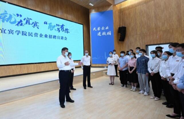 当习近平总书记走进宜宾学院招聘大厅时,民营企业招聘宣讲会正在举行。